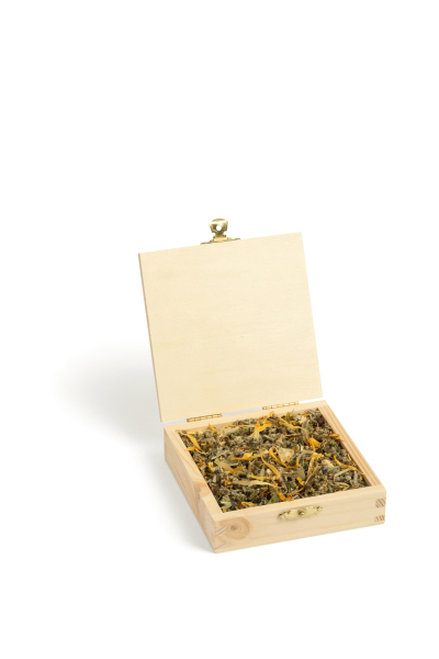 Diese Pflanzen werden unterstützt von Ysop, Johanniskraut, Engelwurzsamen, Wacholderbeeren, Ringelblume und dem Harz Copal.
