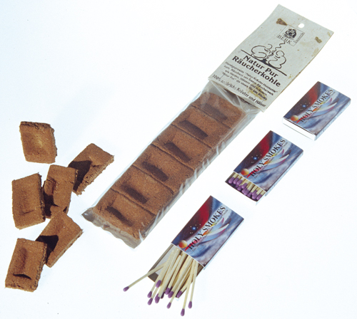Handgepresste „Natur-Kräuter-Holzkohle"- zum Räuchern von losem Räucherwerk wie Harzen, Hölzern und Kräutern.