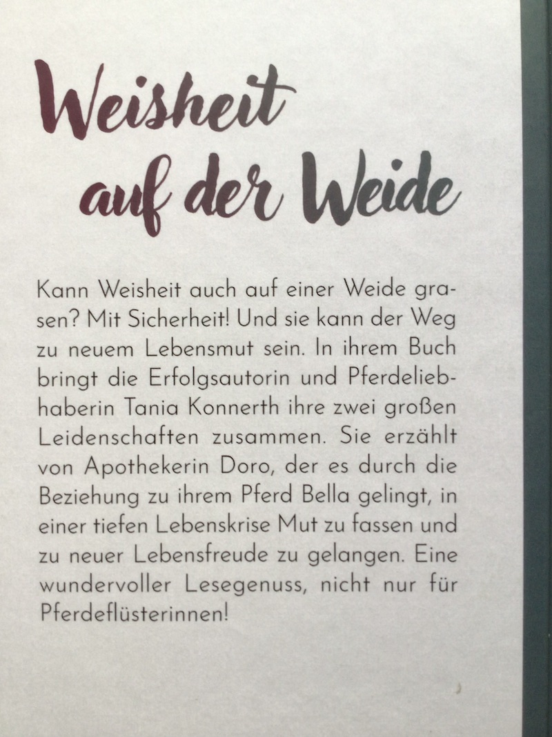 In ihrem neuen Buch bringt die Erfolgsautorin und Pferdeliebhaberin Tania Konnerth ihre zwei großen Leidenschaften zusammen.
